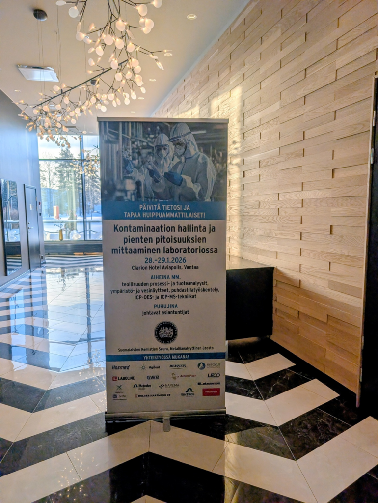Osallistuin tammikuun 2026 lopussa Metallianalyyttisen jaoston järjestämään kaksipäiväiseen seminaariin, jossa pureuduttiin analytiikan ehkä suurimpaan haasteeseen: kontaminaation hallintaan ja pienten pitoisuuksien mittaamiseen.